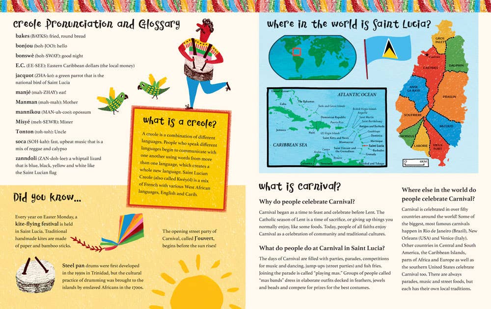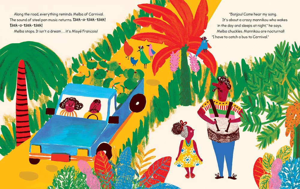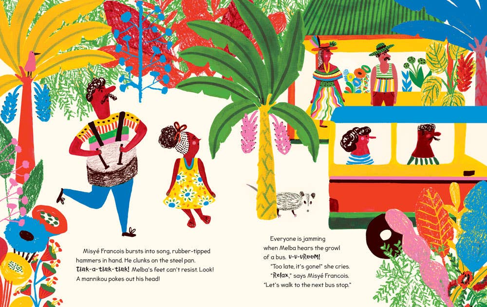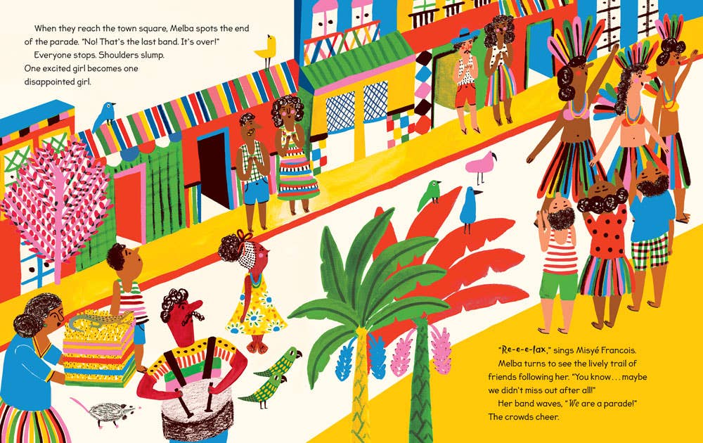 The sights, sounds and tastes of vibrant Saint Lucia come to life in this cumulative #OwnVoices tale of a girl’s journey to Carnival. When a series of unexpected delays disrupts her journey to the big parade, Melba must adjust both her expectations and her route to the festivities. Who will she meet and what will she learn along the way? Related to: Cultural Awareness, Multicultural, Colors, Problem-Solving, Social Emotional Learning, Anxiety, Disappointment, Caribbean, Island, Adventure, Diverse, Creole