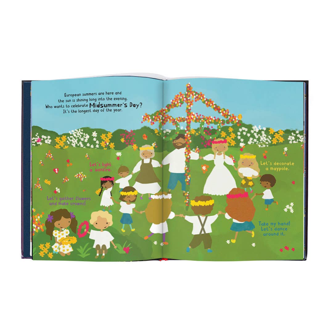 3,2,1 ... Happy New Year! As millions of people celebrate the change of the New Year, get ready to embark on a 12-month adventure around the globe. A book to discover 16 unique holidays, traditions and celebrations of different cultures. From Hanukkah, Christmas and Kwanzaa, to Eid, festive traditions of Indigenous populations and Midsummer's Day, every turn of the page brings with it another reason for people to come together and celebrate.