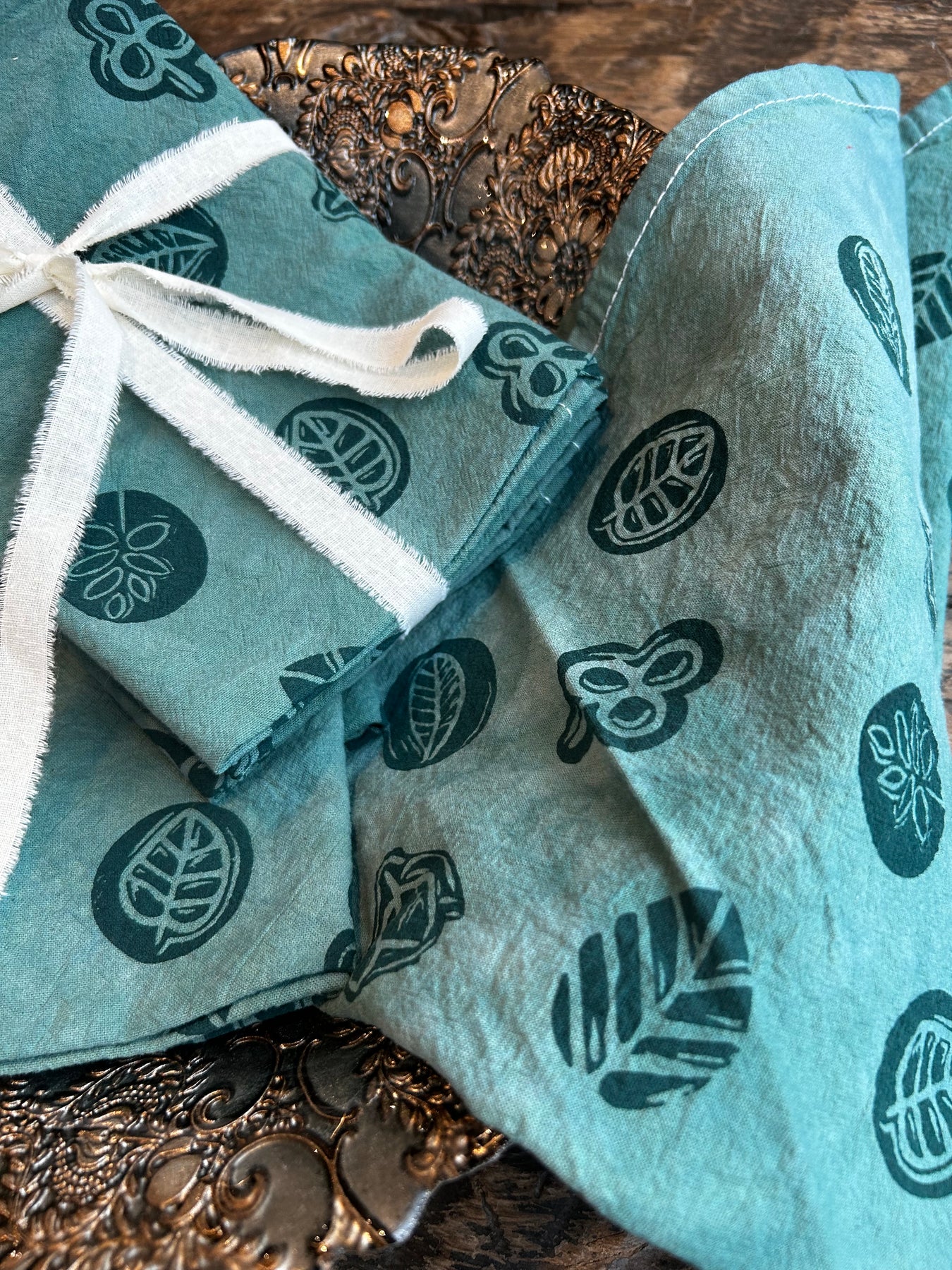 The stamps were then brought to Solstice Handmade, where each towel was thoughtfully printed by hand using the teens’ original designs. Made with care and intention, no two towels are exactly alike—subtle variations in print make each piece unique.
